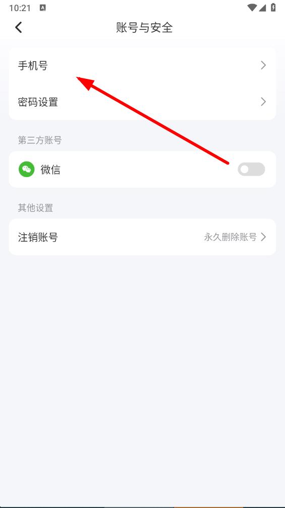 4、在賬號與安全界面中,點擊手機號選項,進入手機號綁定界面。