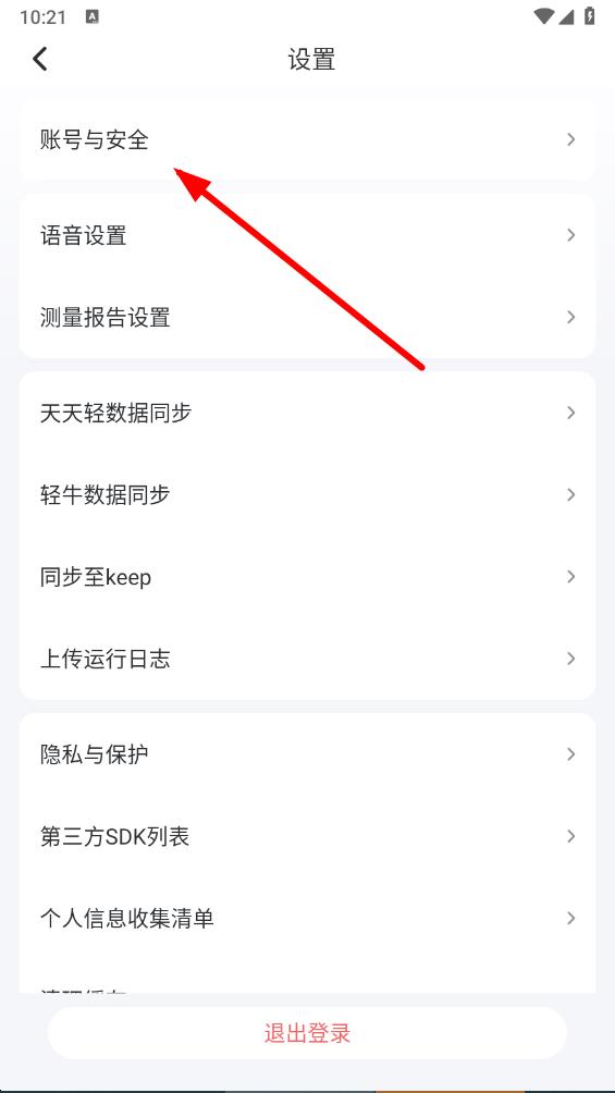 3、在設(shè)置頁面里,點擊賬號與安全選項,進入賬號安全管理界面。