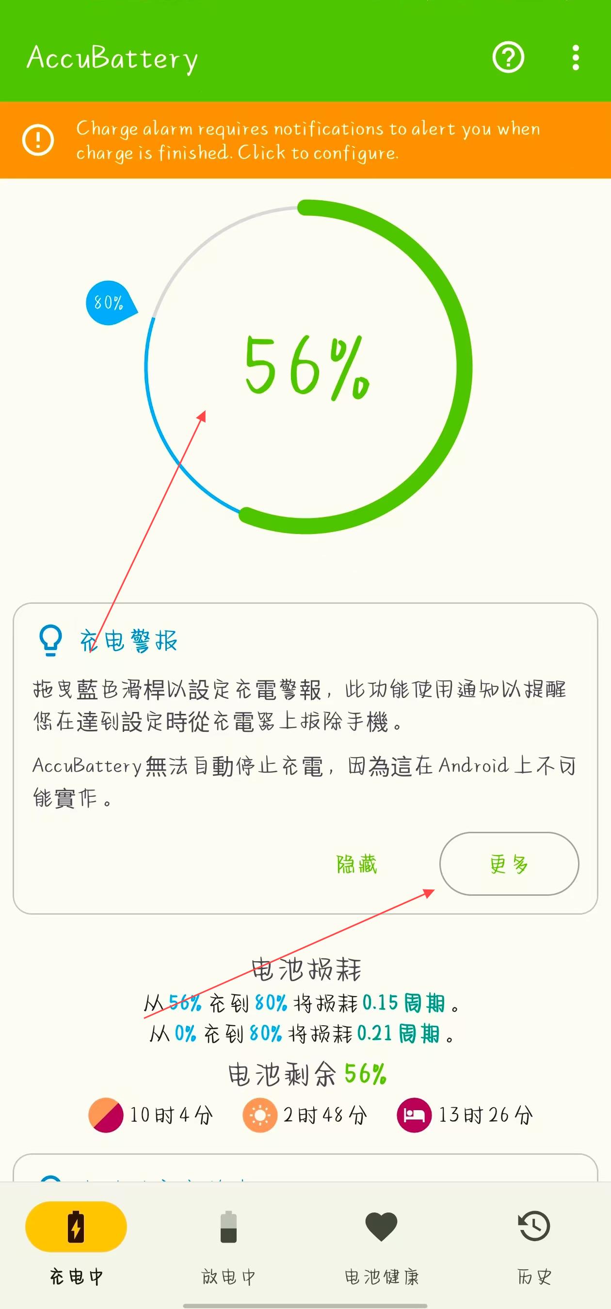 通過充電警告保護電池,充電在80%以下可以有效減少損耗延長電池壽命