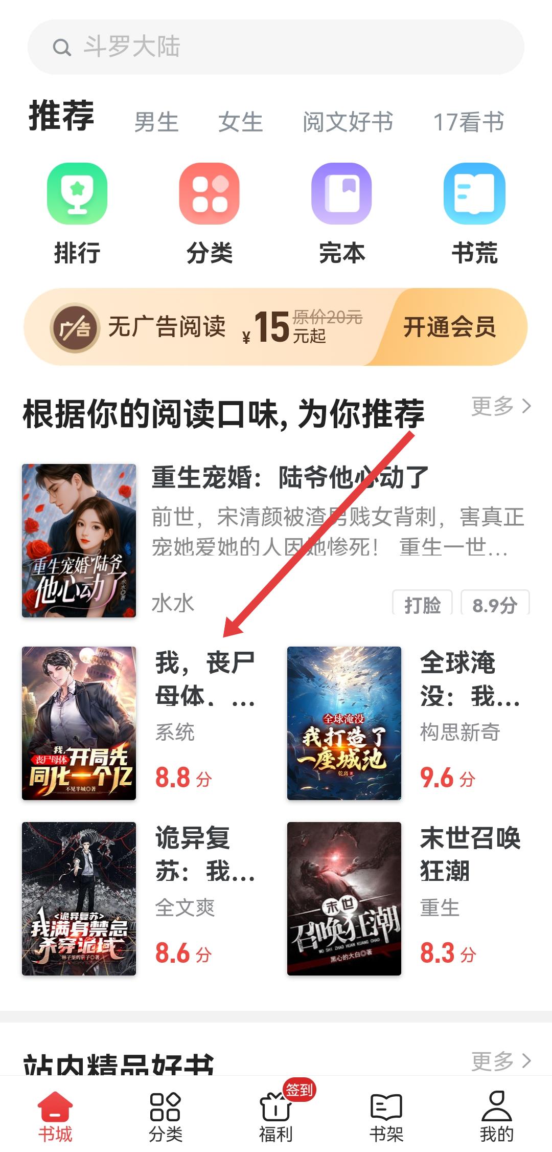 1、在追書神器書城頁面,點擊要分享的書籍,進入書籍詳情的頁面。