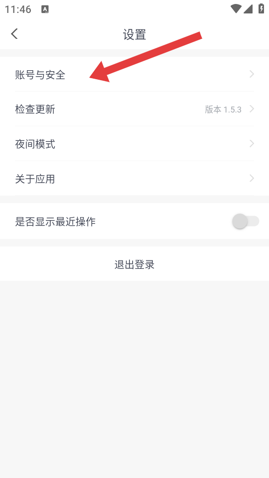 2、在設置頁面,點擊賬號與安全選項,進入賬號與安全的界面。