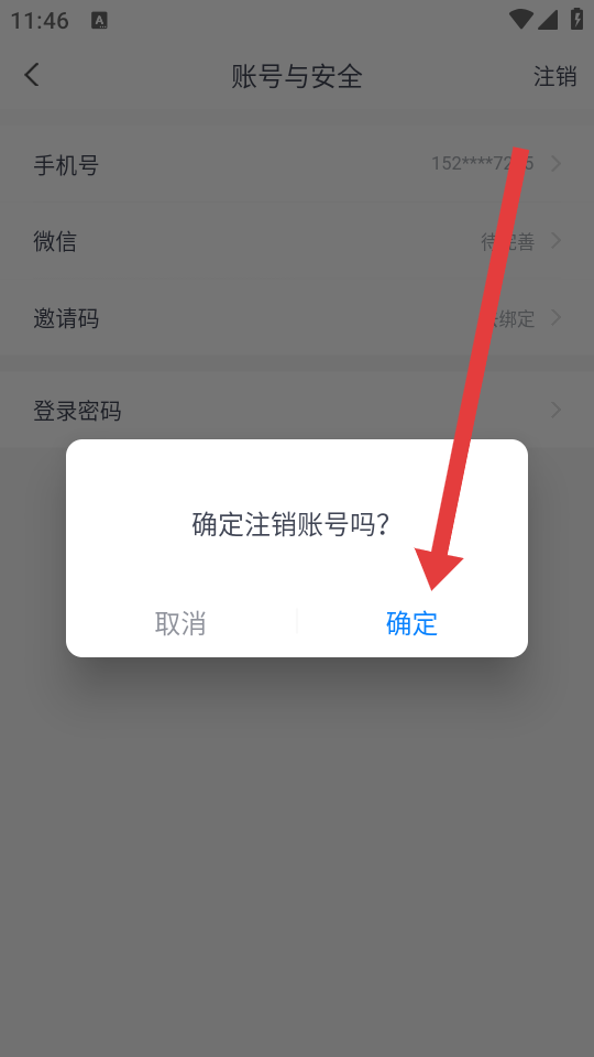 4、在確認框中,我們點擊確定的按鈕,完成賬號注銷的操作。