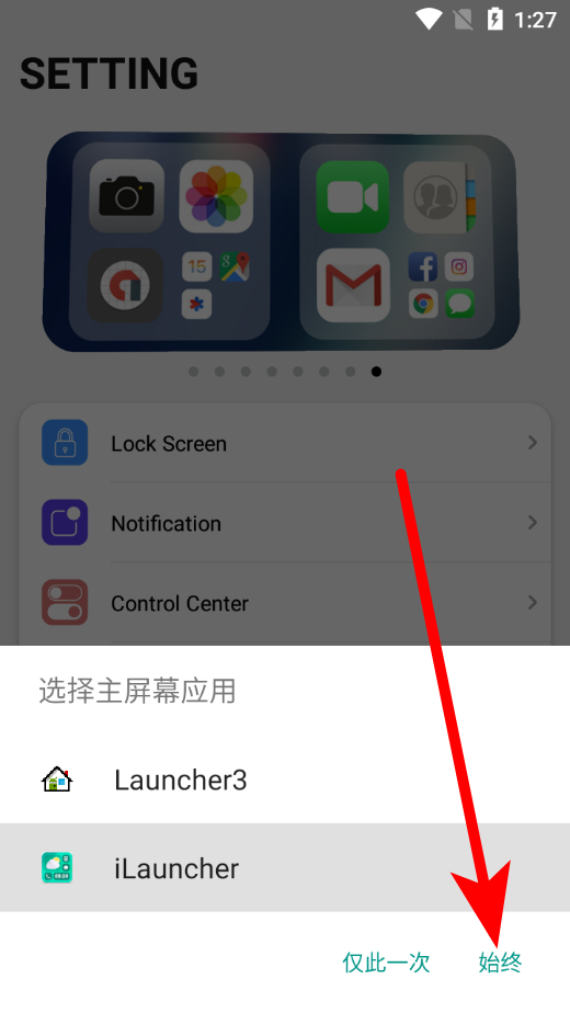 4、接著點(diǎn)擊選擇始終,將其設(shè)置為默認(rèn)啟動(dòng)器。