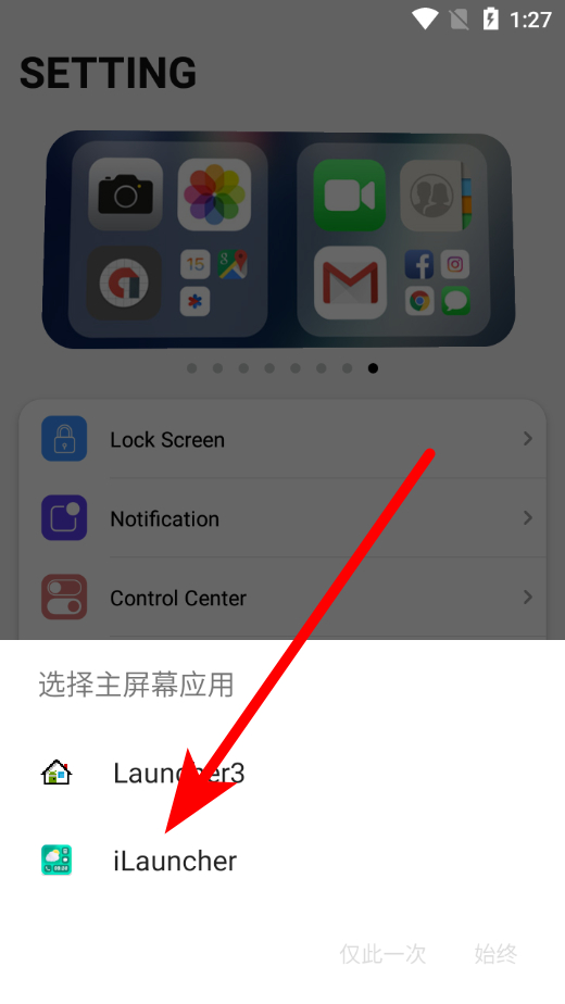 3、在彈出的選擇主屏幕應(yīng)用列表里,選擇iLauncher。