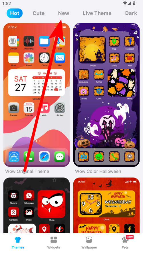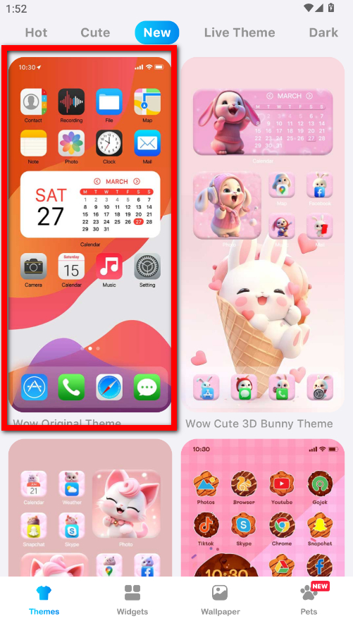 2、在主題界面,點擊如Hot,Cute等分類標簽,瀏覽各類主題。