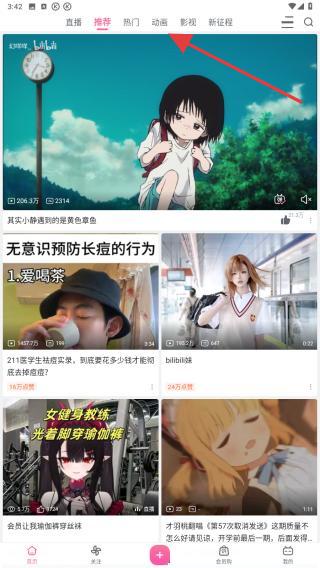 1、打開嗶哩嗶哩app,通過頂部導航欄找到并點擊動畫的標簽。