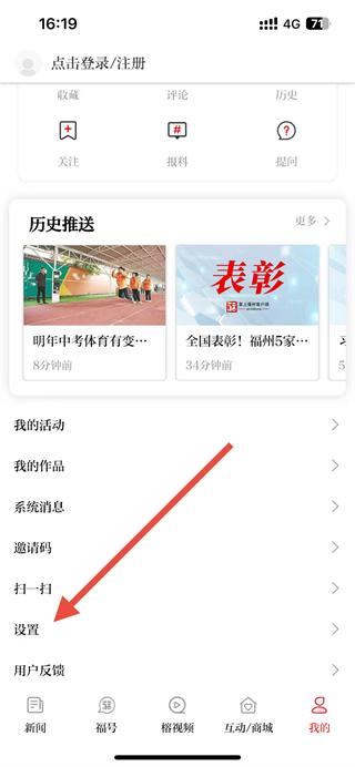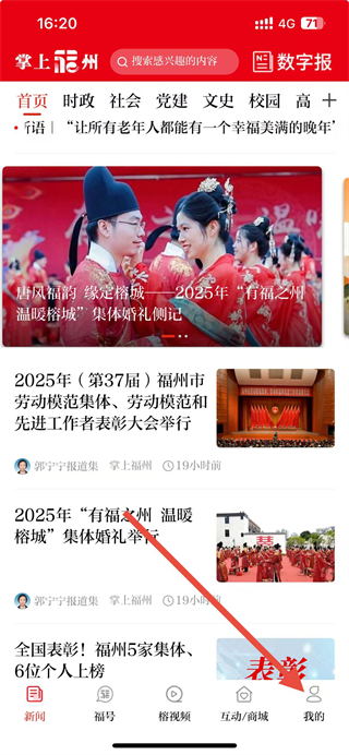 1、在掌上福州app首頁(yè)點(diǎn)擊我的選項(xiàng),進(jìn)入個(gè)人頁(yè)面。
