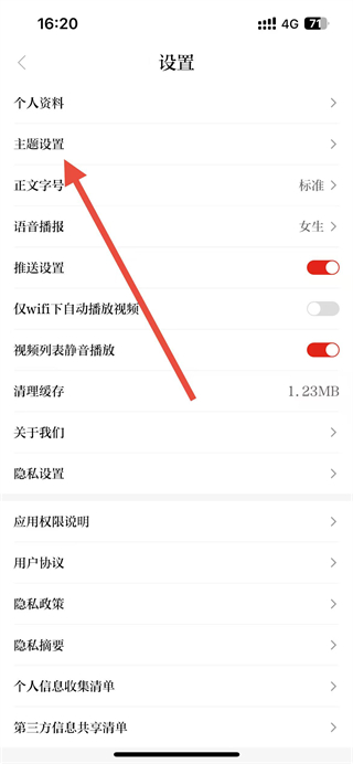 3、在設(shè)置頁(yè)面點(diǎn)擊主題設(shè)置選項(xiàng),進(jìn)入主題設(shè)置頁(yè)面。