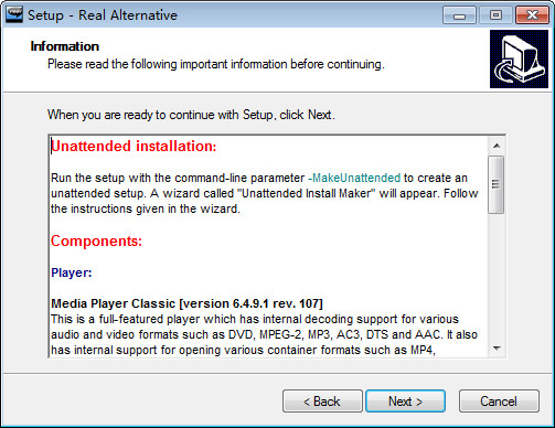 Real Alternative是從Realone中Rip出來的解碼包,簡而言之,通過安裝這個解碼包,你可以在不安裝Realone或者realplayer的情況下播放Real格式的音頻、視頻文件。目前Media Player、Media Player Classic、Zoomplayer等主流的媒體播放器,都能夠通過Real Alternative來播放Real文件。另外,Real Alternative也支持嵌入Web的Realmedia的播放。