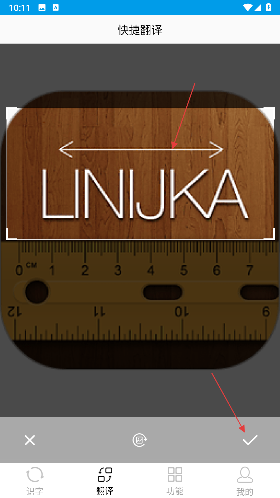 3、圖片選中后,進(jìn)入圖片預(yù)覽界面,調(diào)整識別區(qū)域,然后點擊右下角的對勾按鈕。
