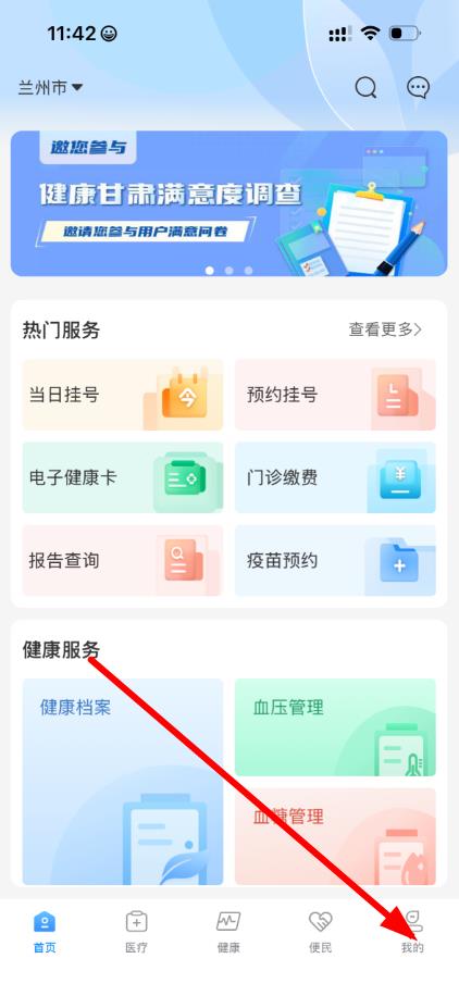 1、打開健康甘肅app,點(diǎn)擊右下角我的,進(jìn)入個(gè)人頁面。