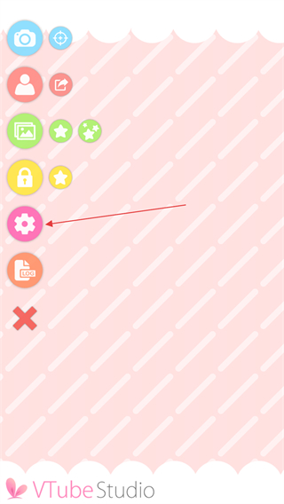 1、打開(kāi)VTube Studio應(yīng)用,點(diǎn)擊粉色的設(shè)置圖標(biāo)。