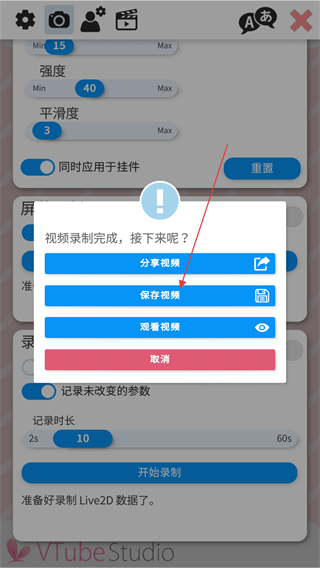 4、在彈出的視頻錄制完成選項(xiàng)中,點(diǎn)擊保存視頻按鈕。