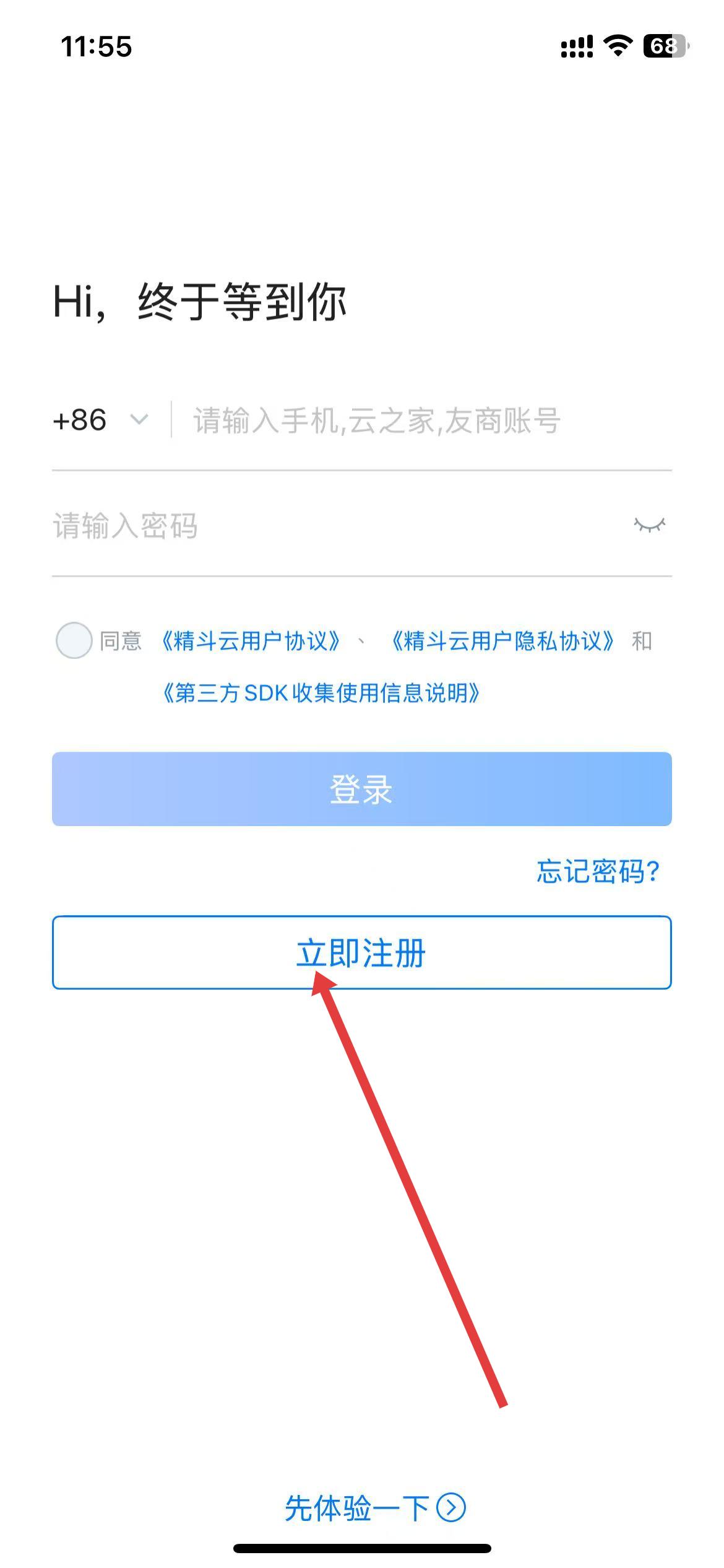 1、點擊界面中的立即注冊選項,進入賬號注冊頁面。