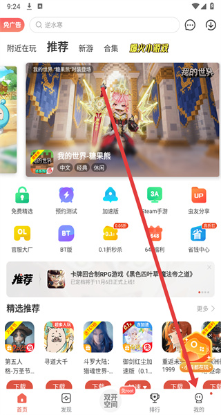 1、用戶進入到應用之中后,需要點擊屏幕上方的搜索欄,以進行游戲的搜索;