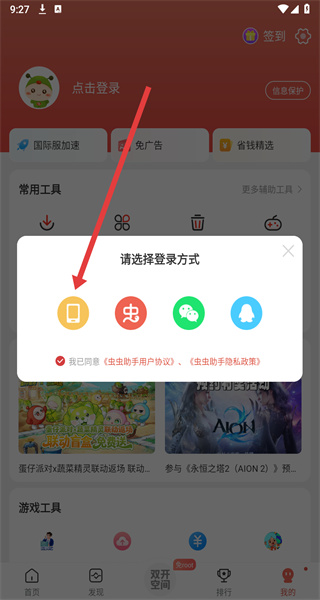 3、在選擇登錄方式窗口中,可以點擊手機圖標,使用手機驗證的方式登錄。