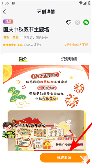 3、在資源詳情的頁面,點擊獲取資源的按鈕,彈出解鎖選項。