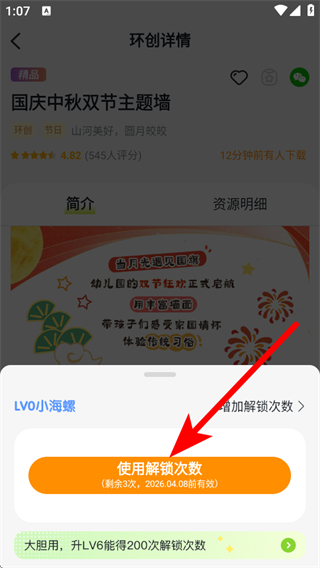 4、在解鎖的選項中,點擊使用解鎖次數(shù),完成資源獲取操作。