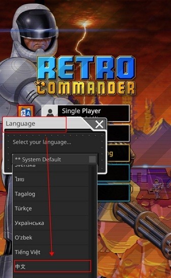 該版本自帶翻譯器為漢化版,但如果系統(tǒng)沒(méi)翻譯成功,可以在游戲首頁(yè)中左側(cè)的位置找到【語(yǔ)言(Language)】,往下滑找到【中文】,選擇完成后點(diǎn)擊即可將游戲語(yǔ)言改為中文。