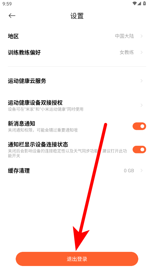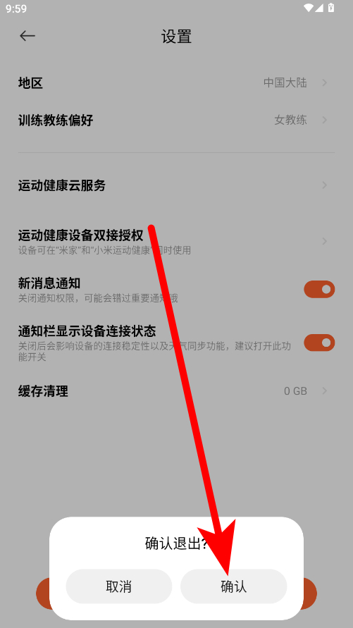 3、在設(shè)置頁(yè)面,點(diǎn)擊底部的退出登錄按鈕,彈出確認(rèn)退出提示框。