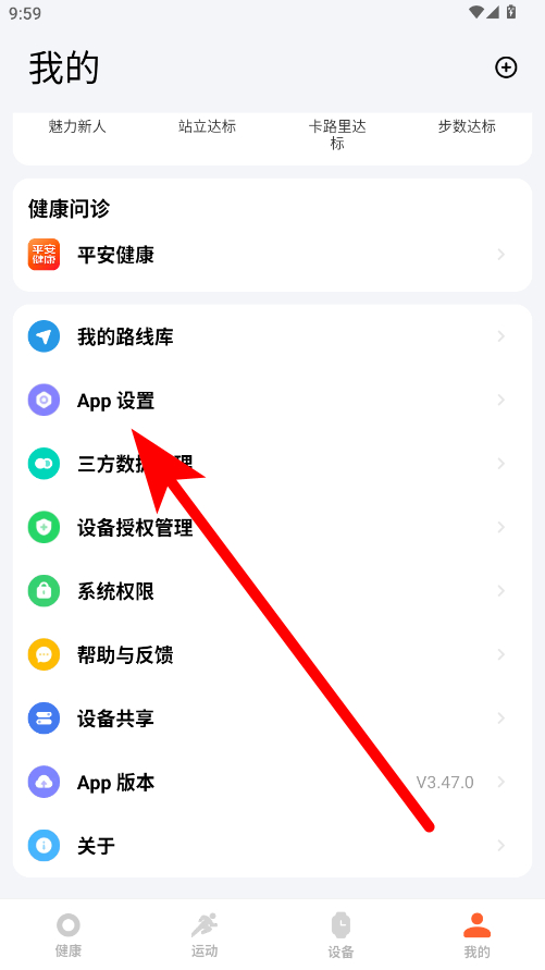 2、在個(gè)人頁(yè)面,點(diǎn)擊App設(shè)置選項(xiàng),進(jìn)入設(shè)置頁(yè)面。