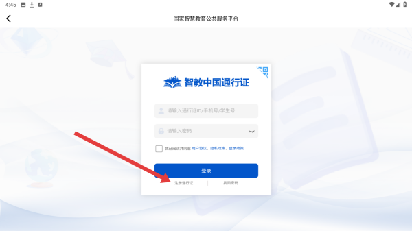 2、在國家智慧教育公共服務(wù)平臺(tái)登錄界面,點(diǎn)擊注冊(cè)賬號(hào)選項(xiàng),跳轉(zhuǎn)至手機(jī)號(hào)注冊(cè)頁面。