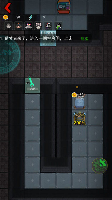8、被獵夢者攻擊過之后可以點擊維修,這樣就能維修完自己的鐵門了。