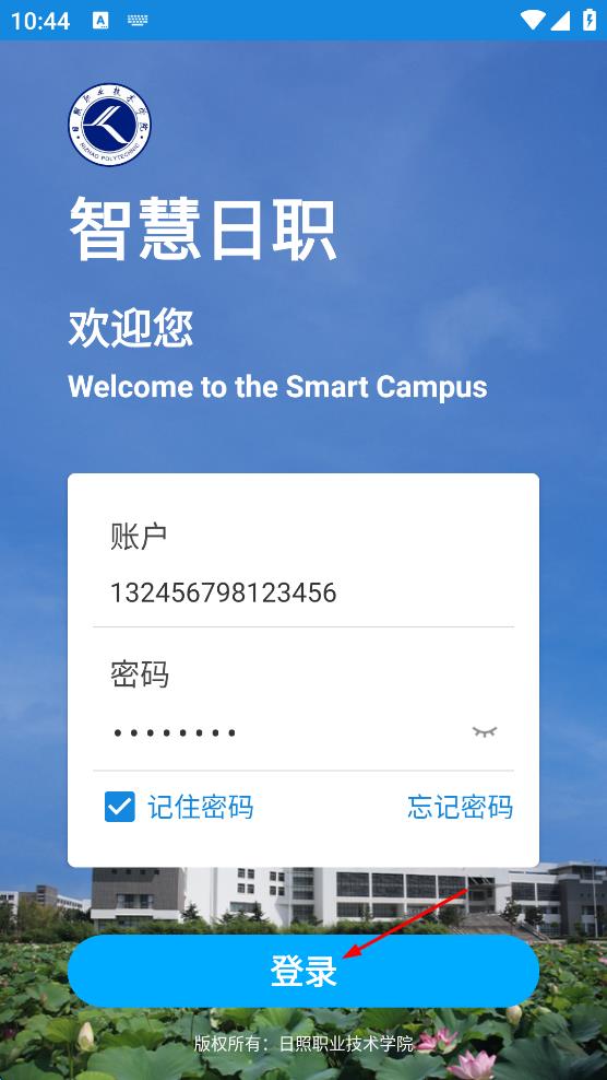 1、打開智慧日職App,在登錄頁面的賬戶輸入框中輸入身份證號,在密碼輸入框中輸入密碼,點擊“登錄”按鈕。