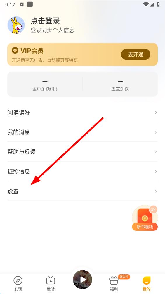 1、打開得間小說app,進(jìn)入首頁(yè)后點(diǎn)擊底部導(dǎo)航欄中我的選項(xiàng)。