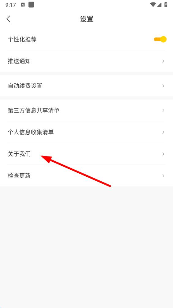 3、在設(shè)置界面里點(diǎn)擊關(guān)于我們選項(xiàng),進(jìn)入關(guān)于得間小說的信息頁(yè)面。