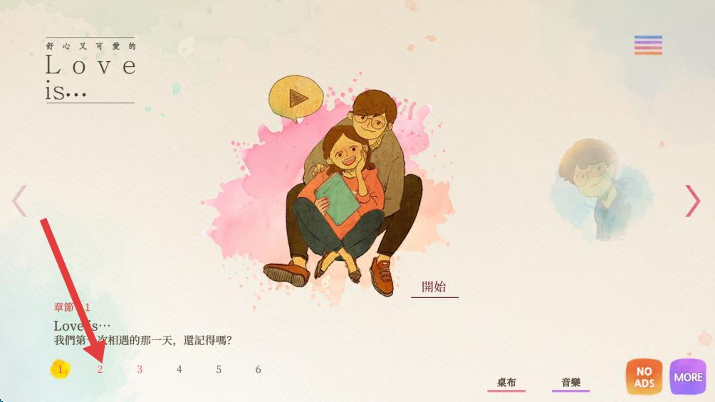 2、選好章節(jié)后,點(diǎn)擊主界面的開始按鈕,進(jìn)入該章節(jié)的游戲內(nèi)容。