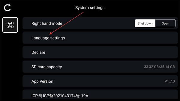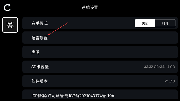 7、進(jìn)入設(shè)置界面設(shè)置右手模式和語言;