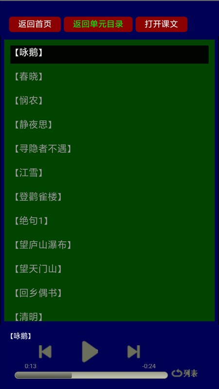 進(jìn)入朗讀界面可以獲取文字內(nèi)容,讓孩子學(xué)習(xí)到更多的國學(xué)知識。