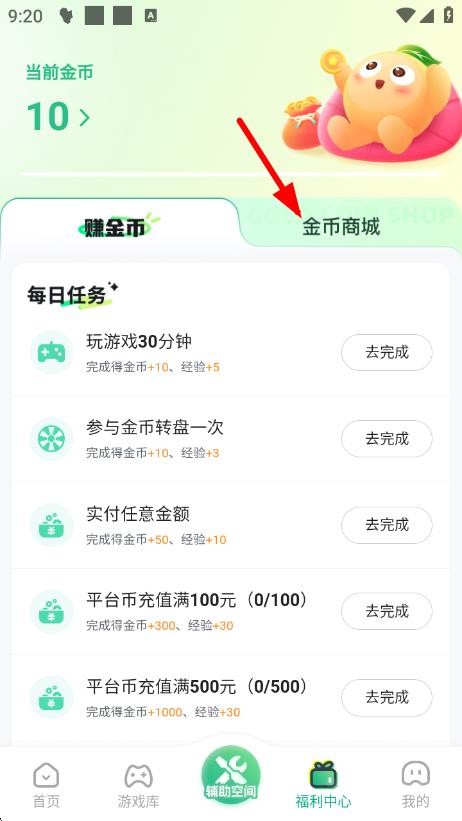 2、在福利界面中,點擊金幣商城選項,切換到金幣兌換的相關(guān)頁面。