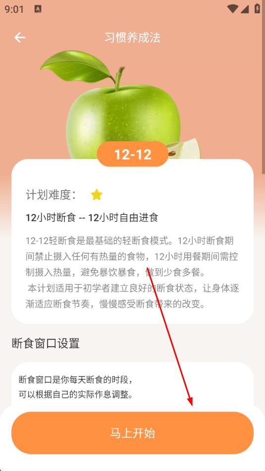 4、點(diǎn)擊所選計(jì)劃進(jìn)入詳情頁(yè)面,點(diǎn)擊馬上開(kāi)始按鈕,即可重新制定計(jì)劃。