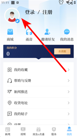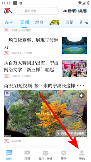 1、打開甬派app,在首頁點擊底部我的,進入個人的頁面。
