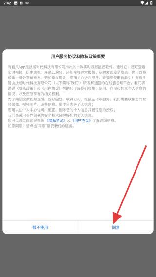 1、打開有看頭APP,首屏彈出用戶服務(wù)協(xié)議和隱私政策概要彈窗,閱讀協(xié)議后,點(diǎn)擊同意。