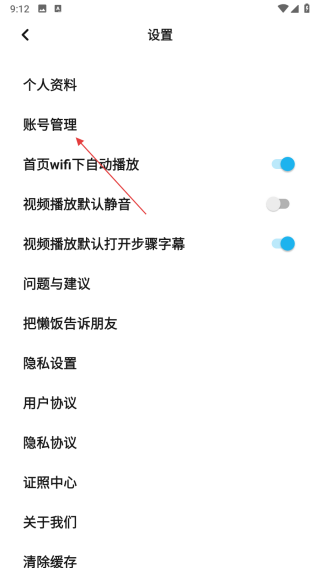 2、在設(shè)置界面中,點(diǎn)擊賬號(hào)管理選項(xiàng),進(jìn)入賬號(hào)管理頁面。