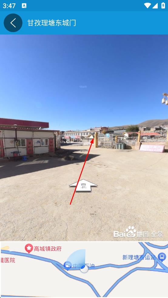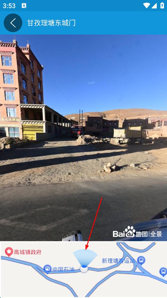3、進(jìn)景點(diǎn)詳情頁面后,可查看該地點(diǎn)的全景圖,還能通過頁面下方的地圖部分,結(jié)合全景圖,更全面地了解景點(diǎn)及其周邊的地理情況。