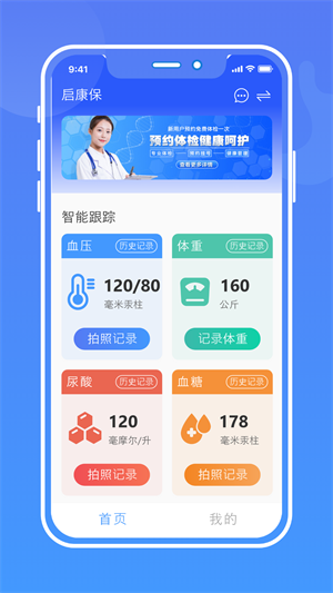- 智能跟蹤服務(wù)在線使用,時(shí)刻跟蹤你的血鴨、體重、尿酸、血糖等信息,更好的管理你的身體健康。