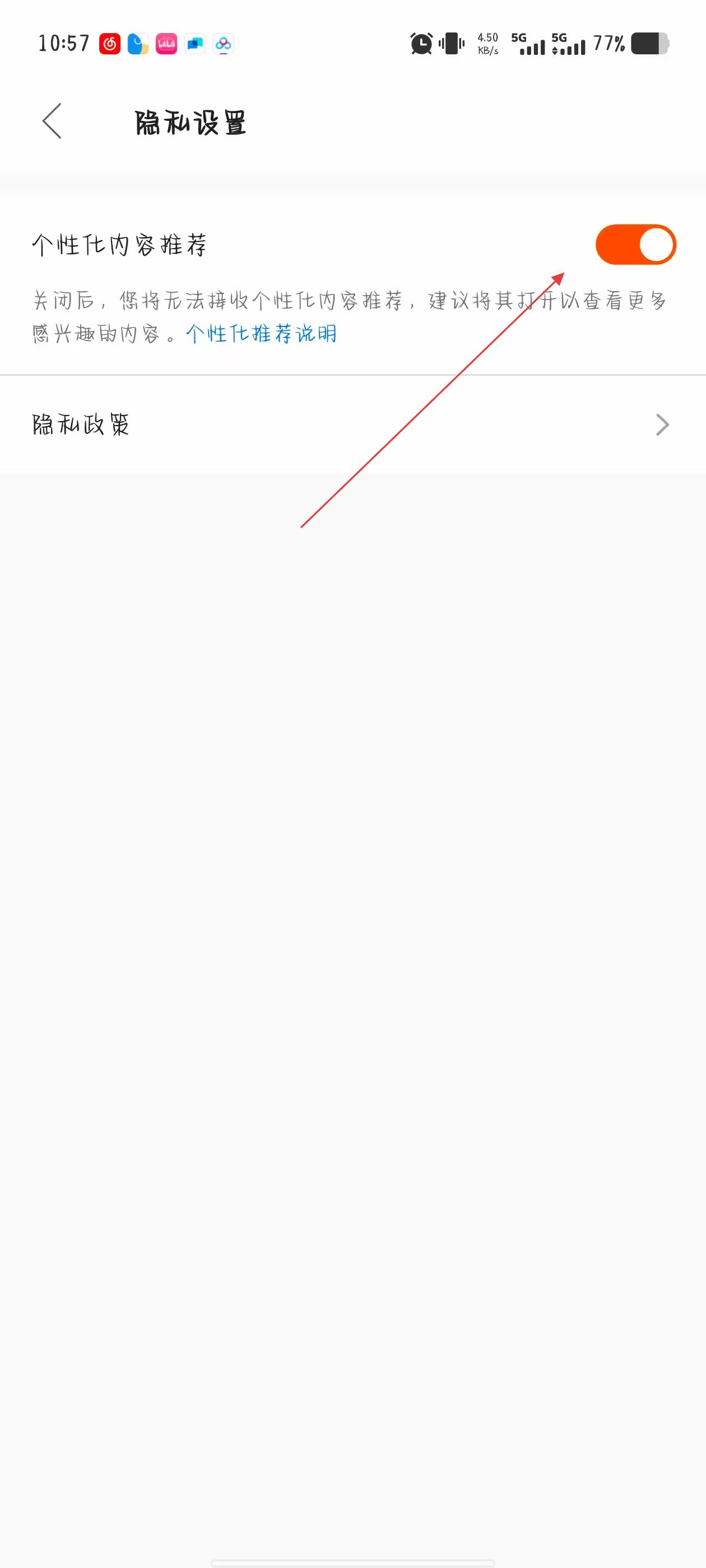 4、在隱私與個(gè)性化頁(yè)面中,找到個(gè)性化推薦相關(guān)的開(kāi)關(guān)按鈕,點(diǎn)擊開(kāi)關(guān)將其切換為關(guān)閉狀態(tài)。