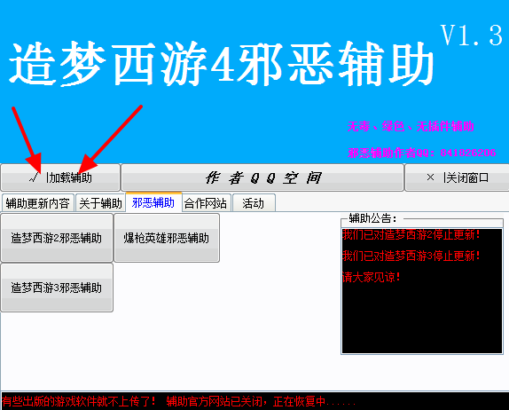 1、打開造夢(mèng)西游4邪惡輔助,點(diǎn)擊【加載輔助】