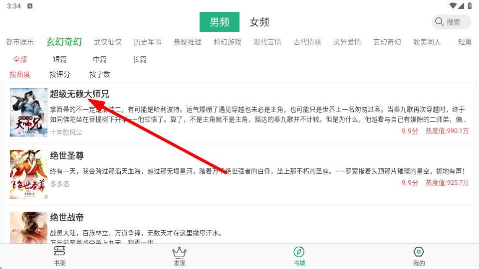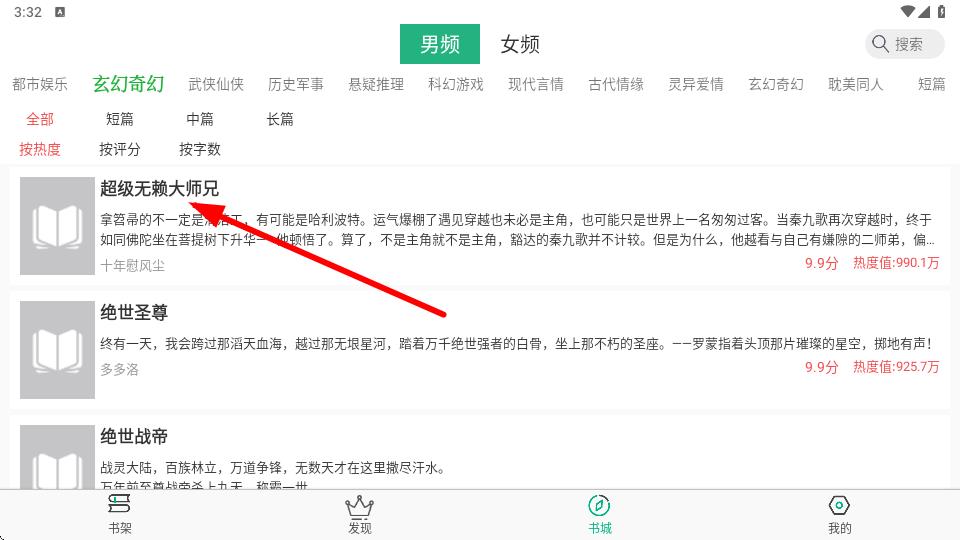 2、在小說(shuō)列表中,找到想閱讀的小說(shuō),像超級(jí)無(wú)賴(lài)大師兄,點(diǎn)擊小說(shuō)名稱(chēng)或封面圖進(jìn)入小說(shuō)詳情頁(yè)面。