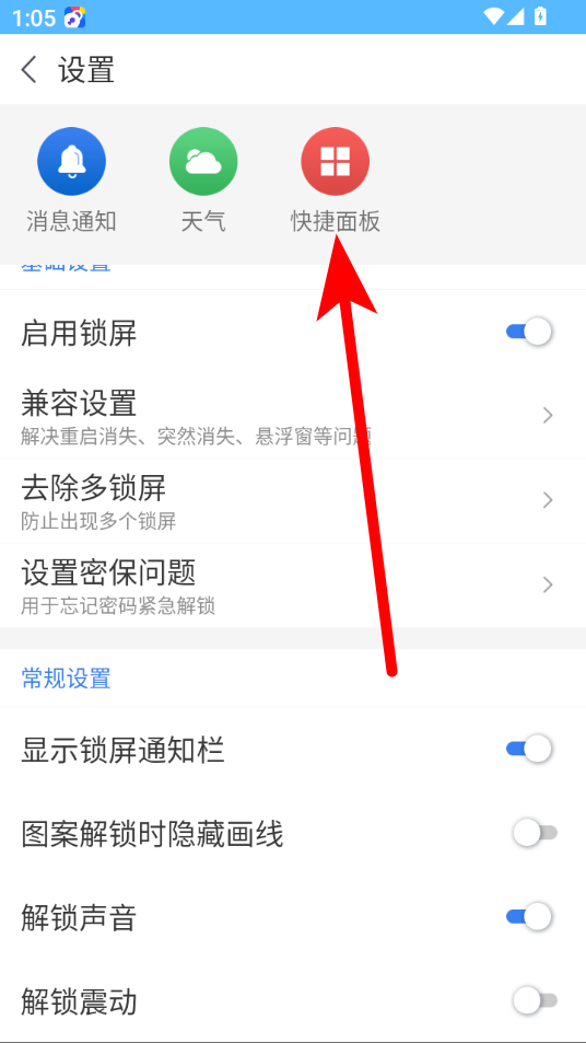 4、在設(shè)置頁面里,找到并點擊快捷面板選項,進行快捷面板相關(guān)設(shè)置。