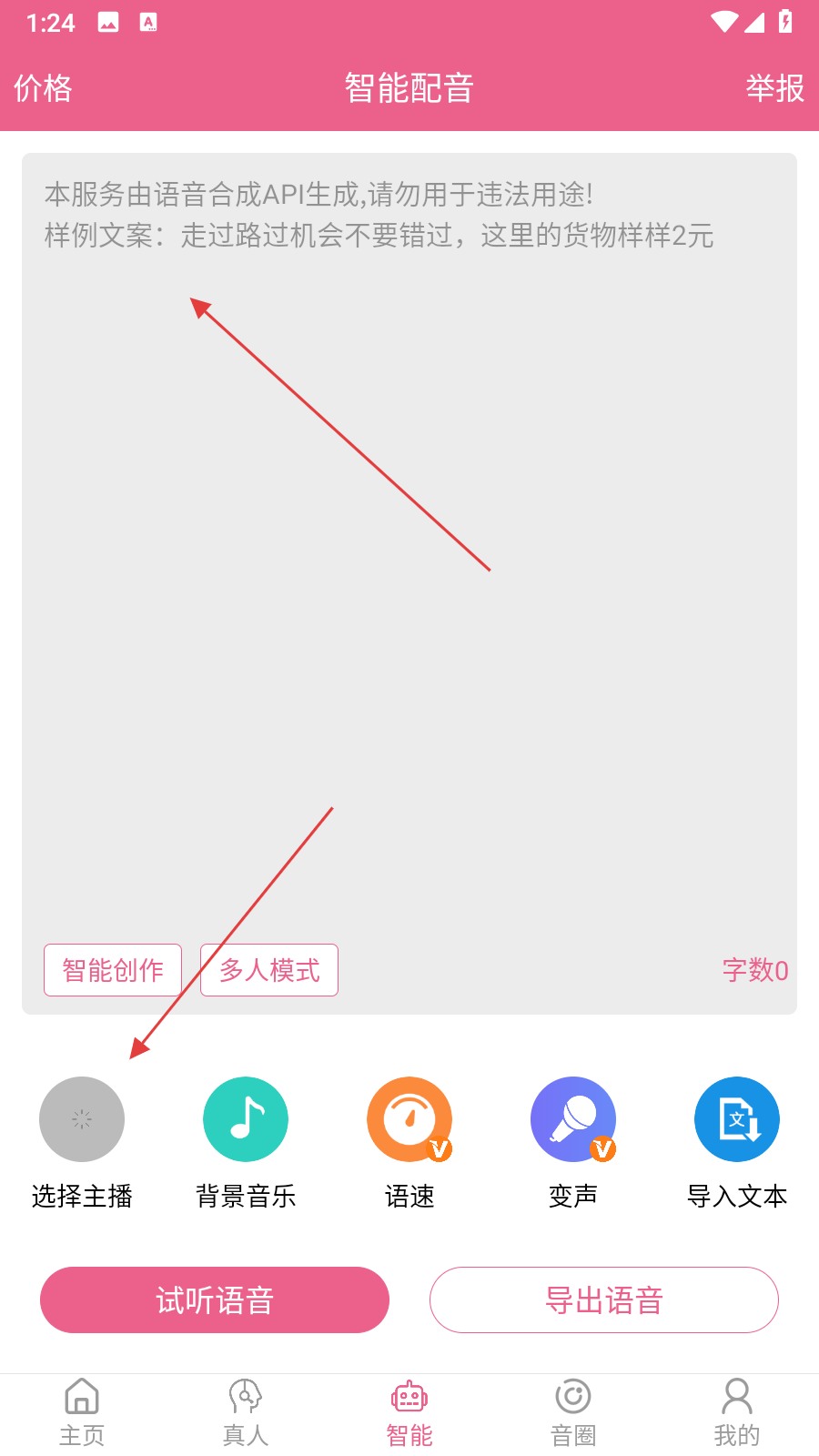 1、打開萌配音進(jìn)入智能界面,在文本框輸入文案或點(diǎn)導(dǎo)入文本添加內(nèi)容。