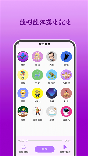 -手機(jī)上的變聲器,為大家提供了超豐富的語(yǔ)音包使用,各種風(fēng)格的語(yǔ)音包全都有,讓你自由選擇在線使用;