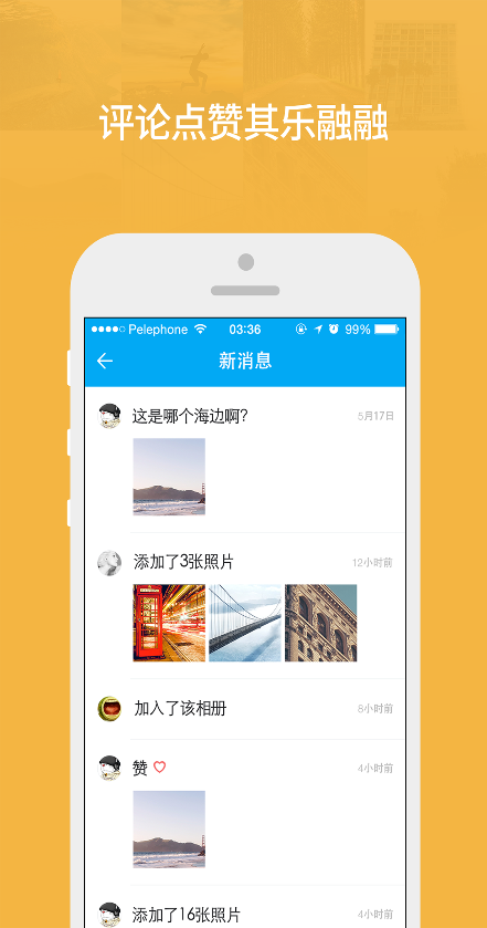 寶寶的成長照片、旅行的合影照片,時光相冊可以一鍵批量分享給親朋好友;邀請家人共建多人相冊,評論點贊其樂融融。