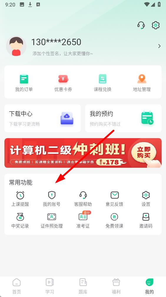 2、進(jìn)入我的頁(yè)面后,找到常用功能板塊,點(diǎn)擊其中的我的賬號(hào)選項(xiàng),進(jìn)入到我的賬戶設(shè)置界面。