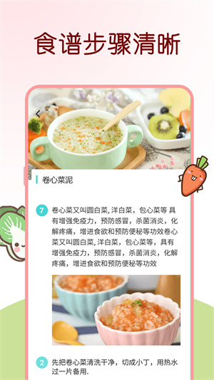 - 食物的營養(yǎng)介紹、食材配比、制作步驟都非常詳細(xì),讓寶媽和寶爸都是可以更輕松的在線學(xué)習(xí)制作輔食。