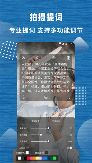 - 提詞字體大小、速度、背景透明度隨意調(diào)整,用戶可以根據(jù)自己的需求在線隨意的設(shè)置最符合的一些提詞功能;